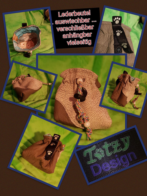 | Leckerliebeutel aus Leder und Lederresten | Halstuch für mich aus Kuschelfleece und mit Druckknopf |