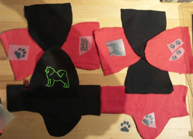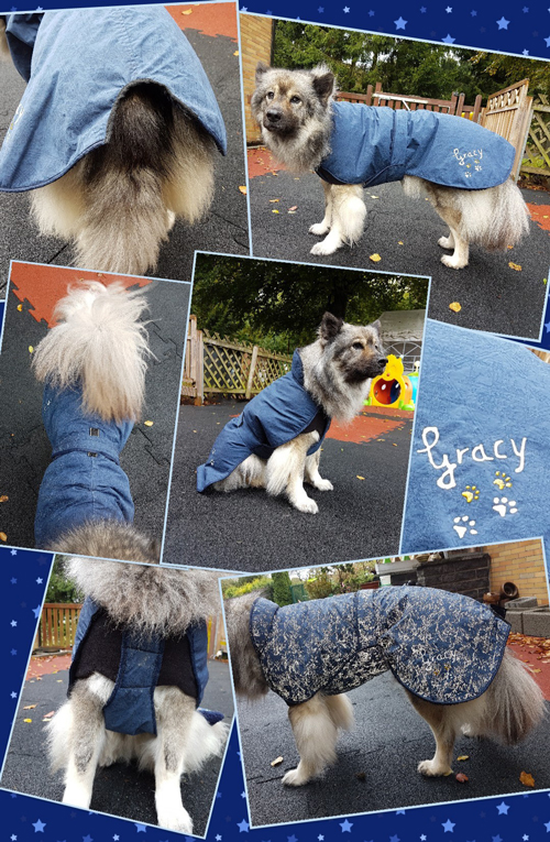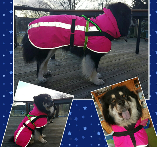 | Regendecken für unsere Eurasier angepasst und mit Geschirr versehen | |