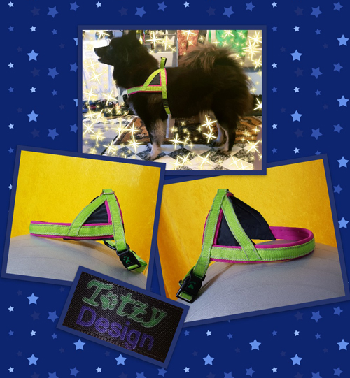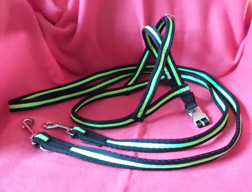 | Hier seht ihr eine neue Kreation von Geschirren --> die Norwäller exakt an den Hund angepasst und weich und ein wenig nachgebend und die passenden Leinen dazu ... natürlich mit Reflex-Details | |
